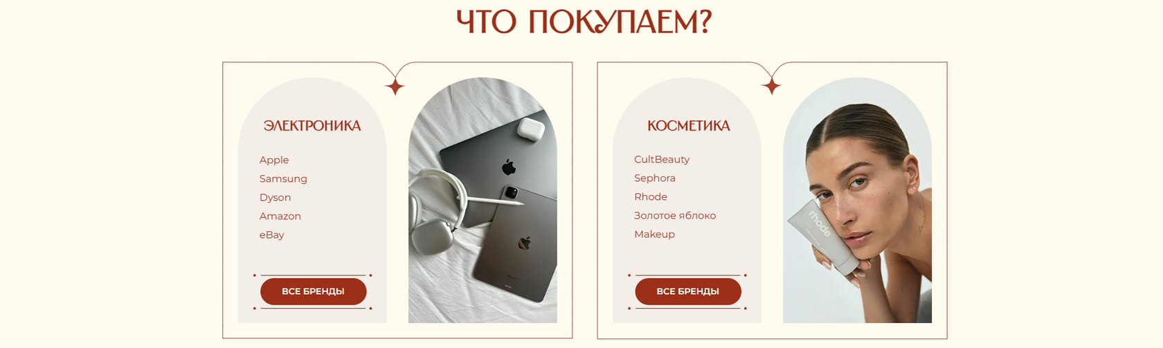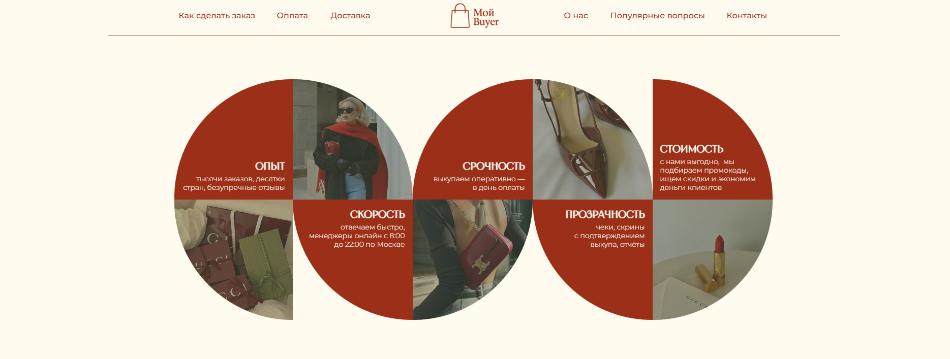 Затем идет краткая информация о команде баеров, а также стильный блок с преимуществами