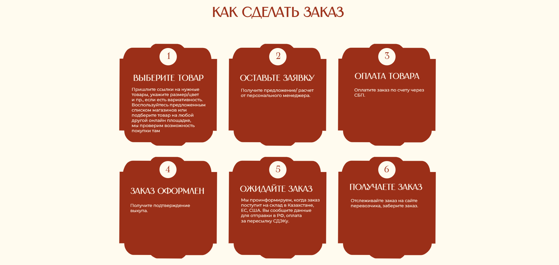 Необходим сайт для команды баеров из Казахстана. На сайте необходимо разместить всю информацию для покупателей, сделать в пастельных тонах и современном стиле, но в то же время не перегружать лишней информацией.