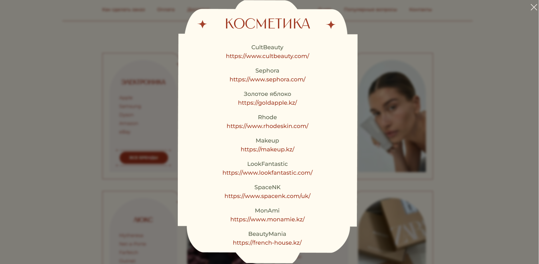 А также всплывающие окна со ссылками на оф. сайты этих брендов: